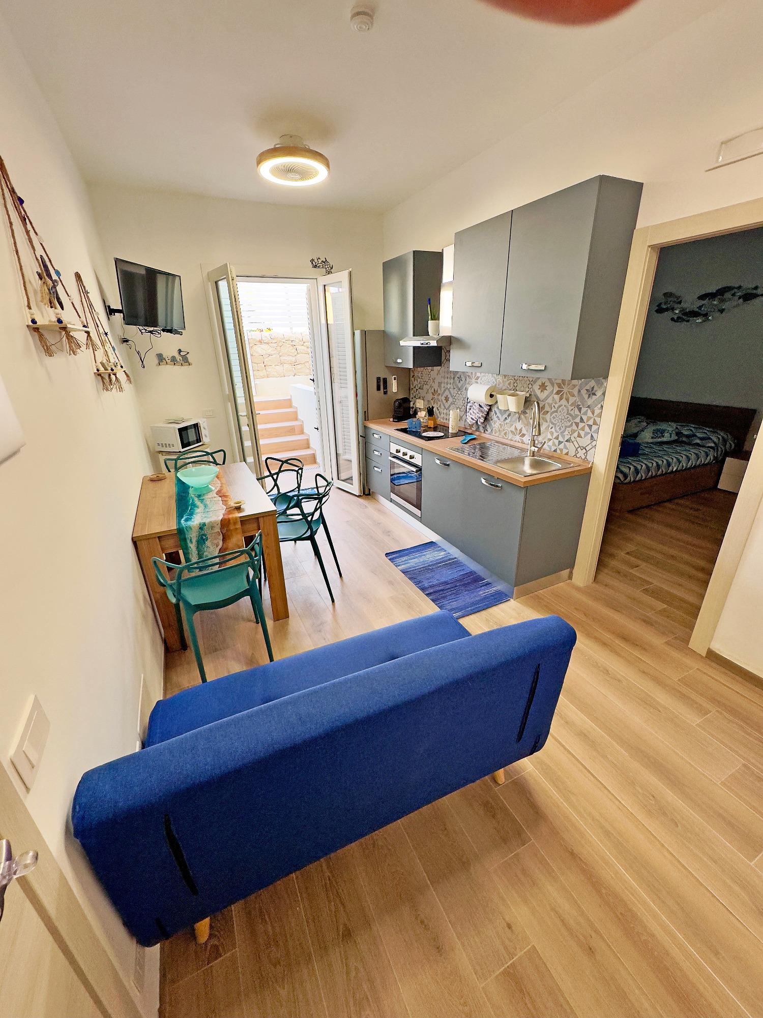 L’abitazione dispone di due camere matrimoniali, una cucina soggiorno completamente attrezzata con divano letto, un bagno con doccia e uno spazio esterno arredato per pranzi e cene all’aperto. L’ingresso indipendente, la doccia esterna e la disponibilità di due biciclette completano i servizi offerti.